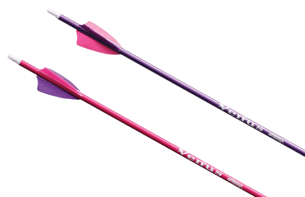 The Victory Venus are the first high-performance arrows designed with youth archers in mind. These arrows are cut to 29”, and offered in a 600 spine, and available in several vibrant colors. These arrows come with real Gateway feathers, perfect for both compound and recurve bows. For arrow sizing and fitting please refer to a dealer near you!